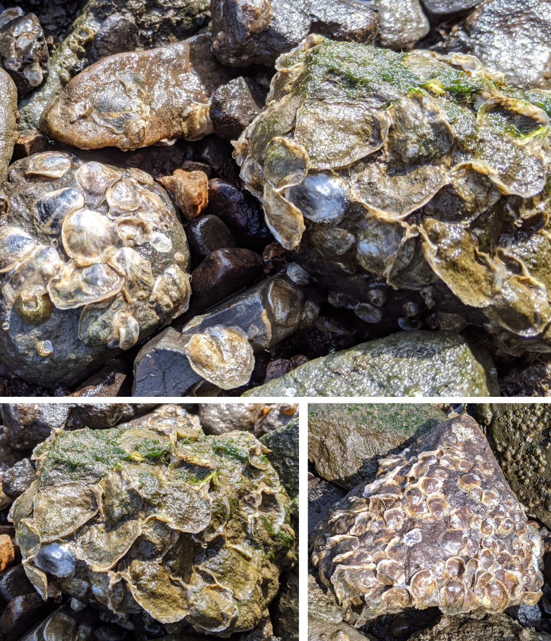 Rachel Carson wrote of periwinkles at the pond. There are three species: the rough (Littorina saxatalis), common (Littorina littorina) and smooth (Littorina obtusata). Roughs live on the highest driest rocks, commons are only underwater at high tide and smooths stay completely submerged.